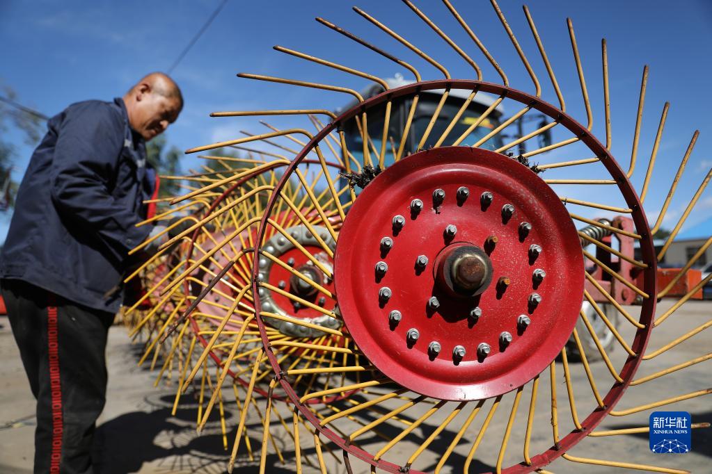 9月19日,在昌圖盛泰農機合作社內,工人對農機具進行維修。新華社記者 姚劍鋒 攝
