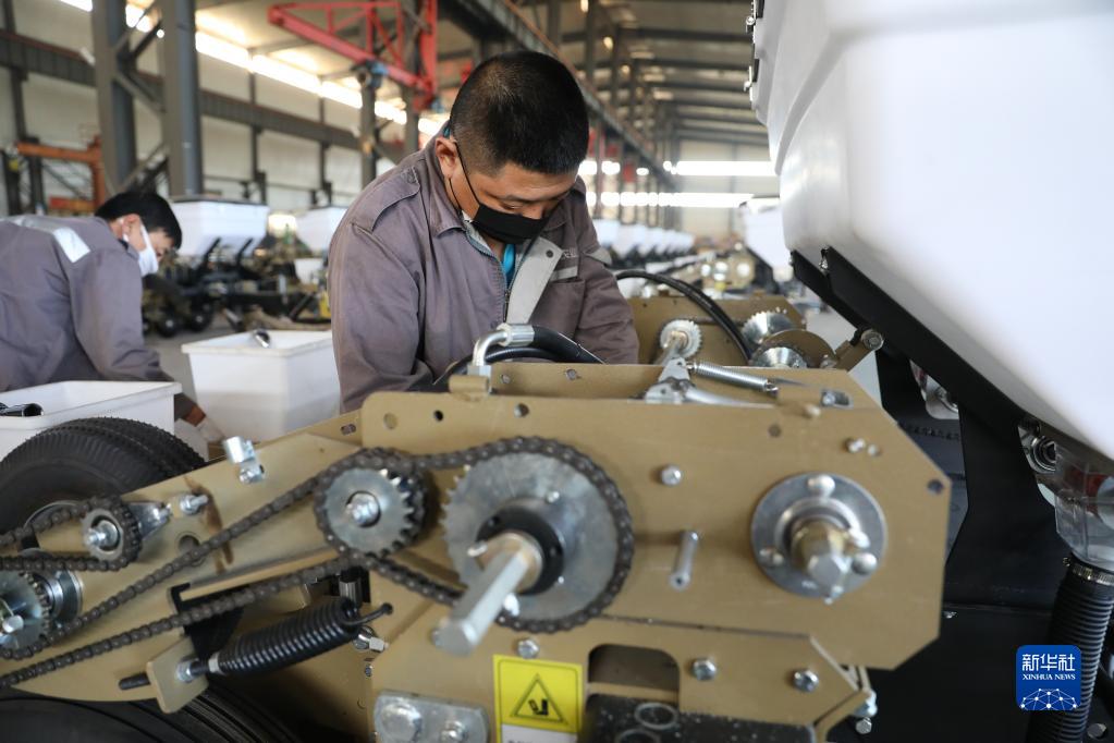 在中科農業(昌圖)有限公司車間內,物料車穿梭其間,機械吊軌快速作業。這家去年轉型生產農機的企業,正加緊趕制一批新的免耕播種機。
