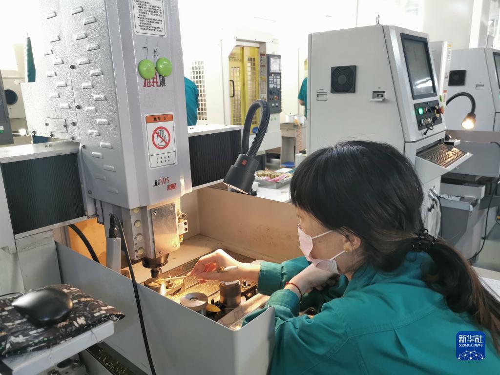 遼寧孔雀表業工作人員正在對表盤做檢查。新華社記者白涌泉 攝