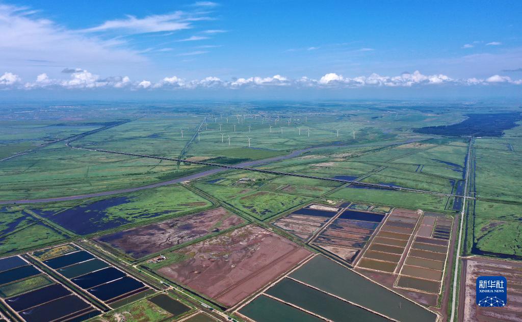 這是2021年8月19日拍攝的遼河入??诟浇鼭竦兀o人機照片)。新華社記者 姚劍鋒 攝
