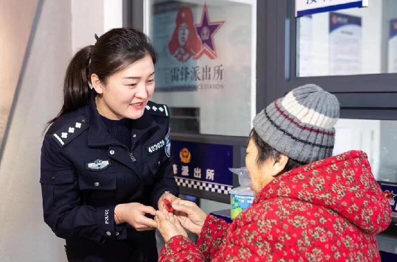 圖為雷鋒派出所的民警為老人發放二維碼身份牌。(受訪者供圖)