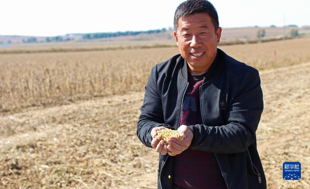 10月7日在法庫縣依牛堡子鎮崔家屯村拍攝的收獲的大豆。新華社記者 楊青 攝