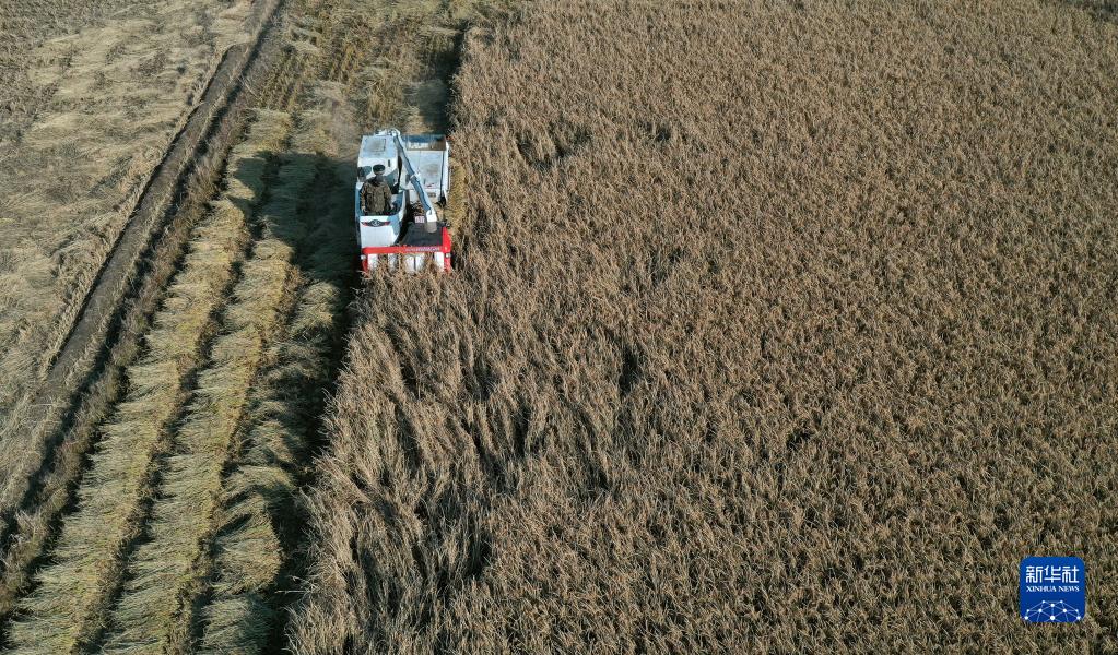金秋時節,在遼寧省水稻主產區之一沈陽市蘇家屯區,金燦燦的稻穗隨風起伏,一臺臺收割機在田間往來穿梭,大片水稻陸續迎來收獲,當地農民搶抓晴好天氣收割水稻。