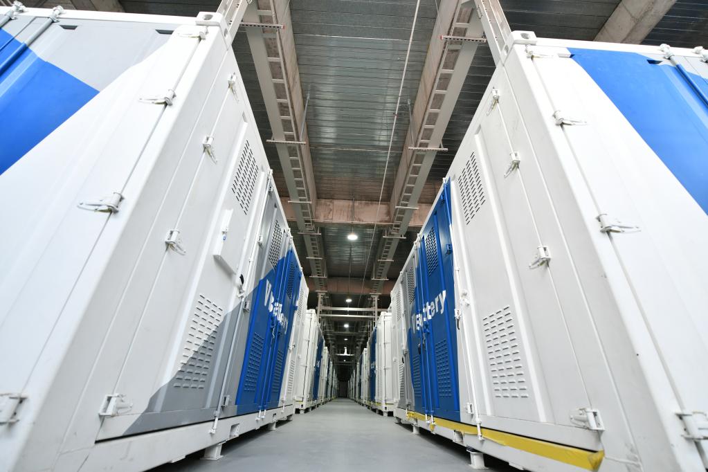 大連液流電池儲能調峰電站的電池集裝箱。(中科院大連化學物理研究所供圖)