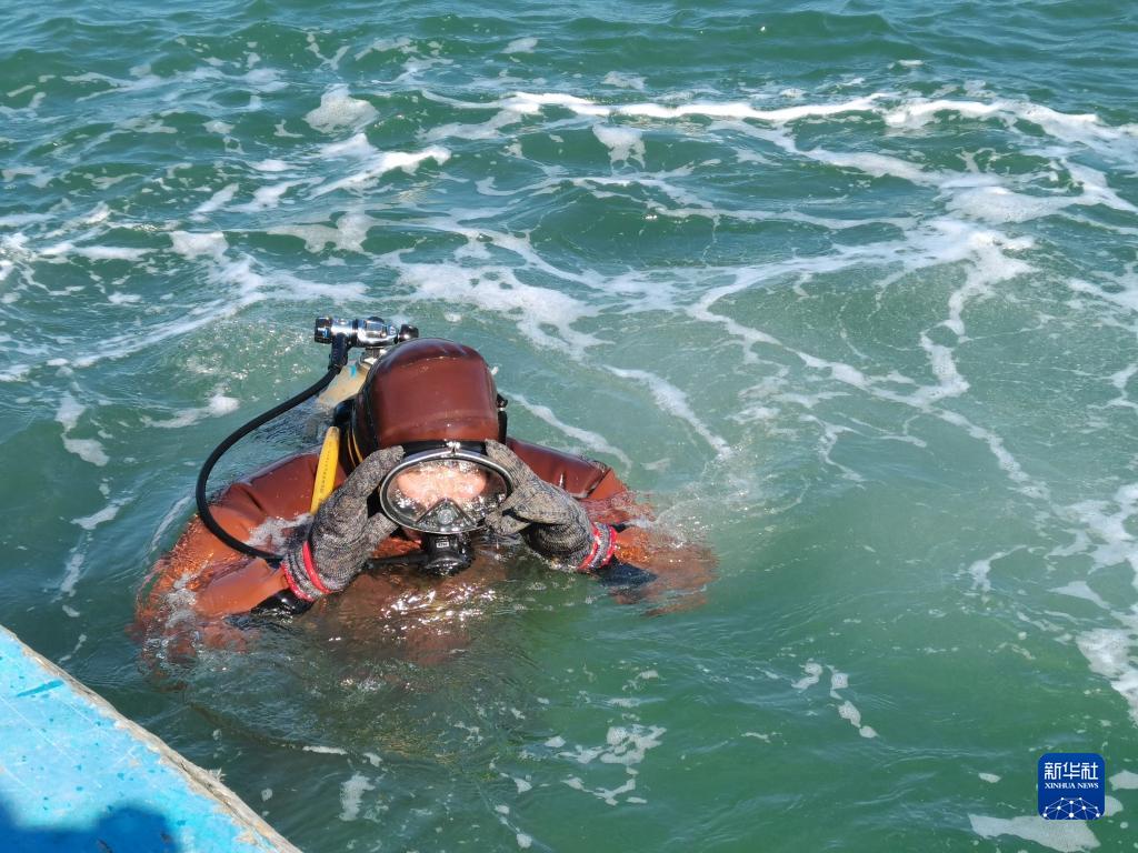 呂大鵬下海捕撈海參。新華社記者 張博群 攝