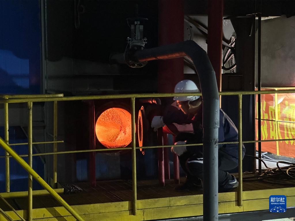 10月31日晚,沈陽市渾南熱力有限責任公司工作人員正在查看鍋爐。新華社記者李昂攝