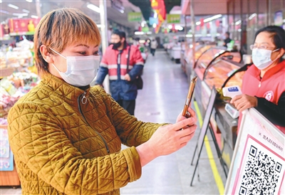 市民在一農貿市場掃描“場所碼”。張文魁攝