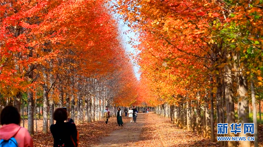 紅色的楓葉、金色的銀杏……近日,大連市金普新區三十里堡的一處彩葉林基地呈現一片迷人景色,吸引游客前來觀賞拍照。