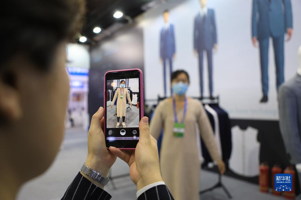 11月7日,參會企業工作人員演示服裝定制工業互聯網平臺。新華社記者王乙杰 攝