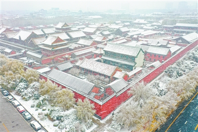 11月12日,沈陽迎來入冬以來第一場降雪。在漫天飄雪的映襯下,紅墻綠瓦的沈陽故宮,美不勝收。張文魁攝