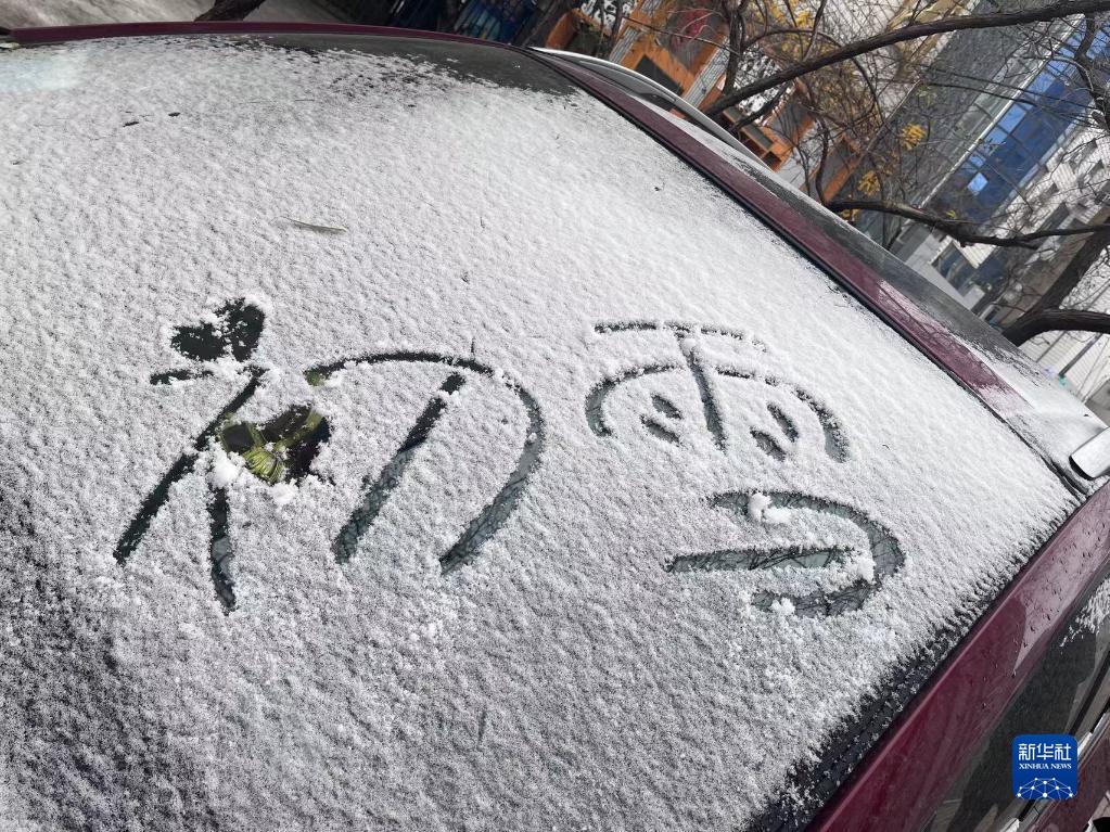 黑龍江省哈爾濱市民在車窗上寫下“初雪”二字。新華社記者 楊思琪 攝