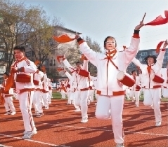 旱地冰球、特色腰鼓操、踢毽子、打沙包、跳房子等,形式多樣,師生互動,校園到處充滿運動的快樂。(記者 趙敬東)