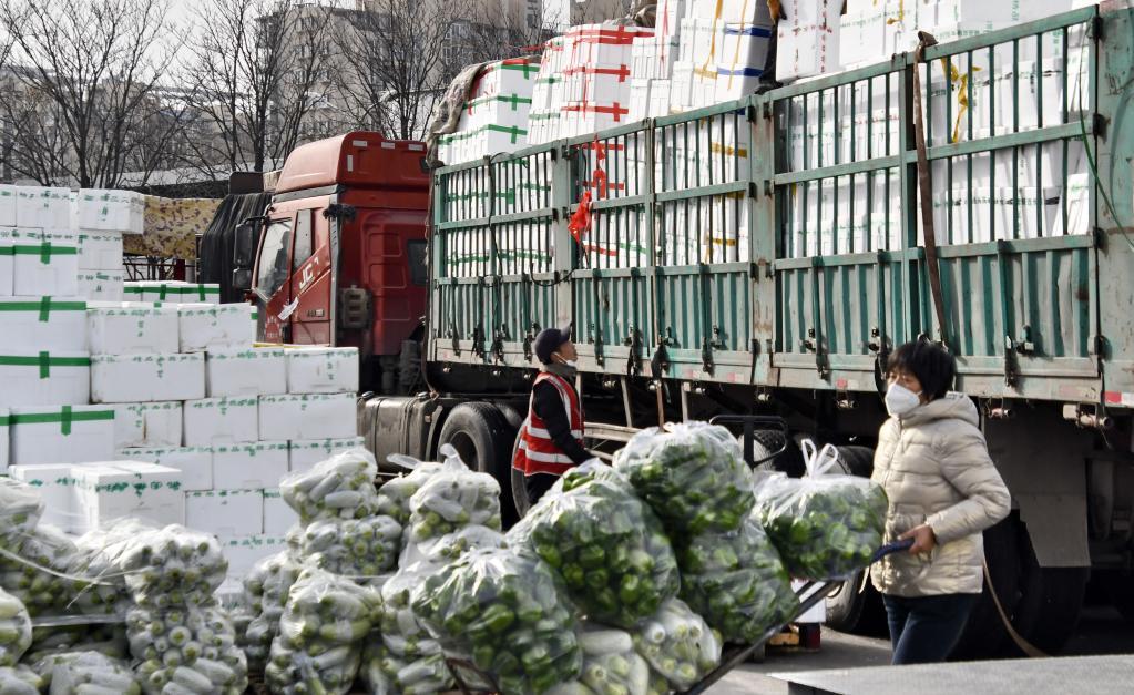 11月28日,北京新發地市場的商戶在搬運新鮮蔬菜。新華社記者 李欣 攝