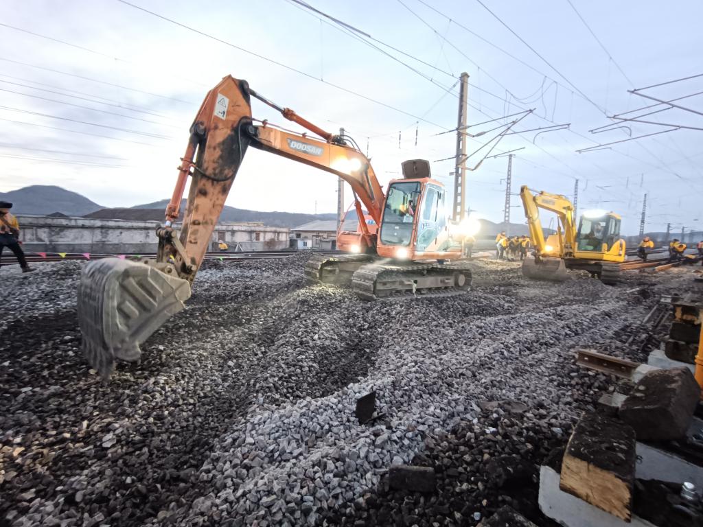 “大伙聽我口令!一二、一二……”27日清晨,在沈大鐵路線得利寺站內機械轟鳴、人聲鼎沸,中國鐵路沈陽局集團有限公司大連工務段施工隊在-5℃的氣溫下抓緊施工,對線路動態不穩定路段進行搶修,為冬季鐵路運輸安全提供保障。
