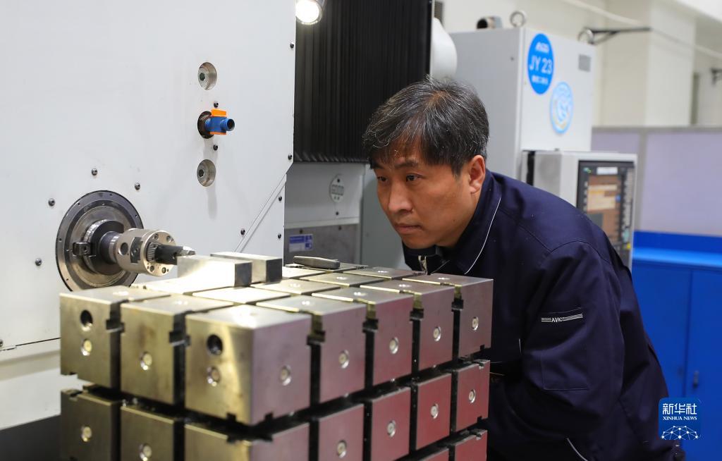 “羅陽青年突擊隊”成員王剛在航空工業沈飛車間操作數控鏜床。