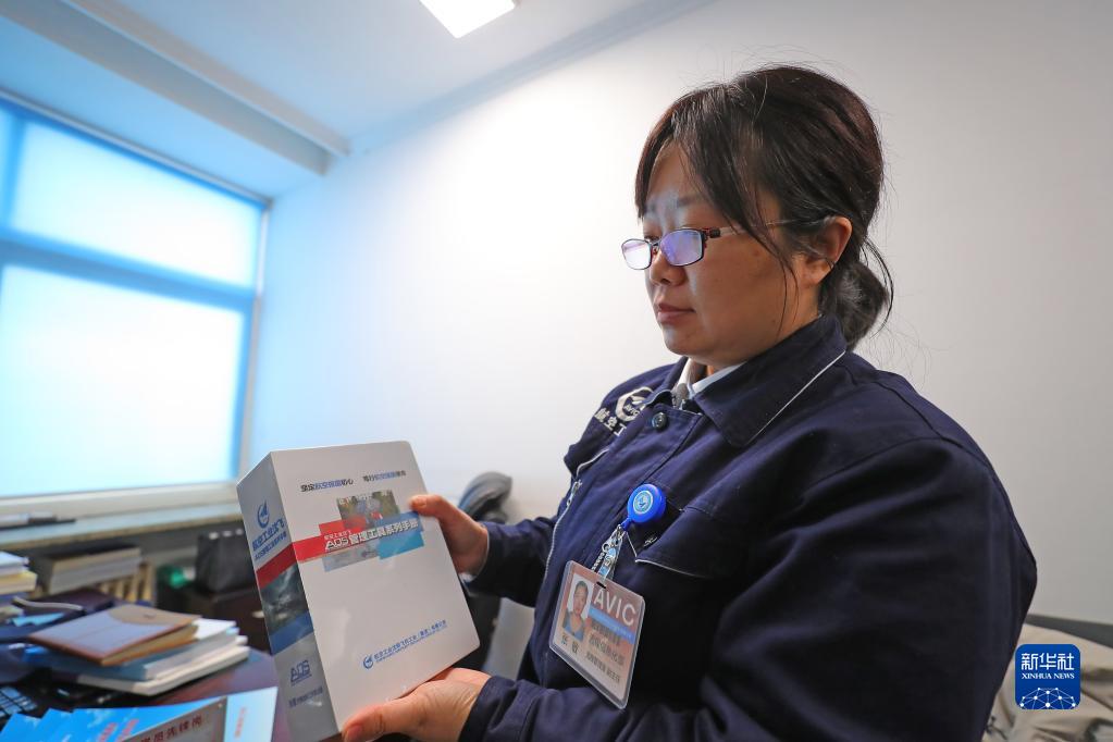 “羅陽青年突擊隊”成員張敏在航空工業沈飛辦公室展示編寫的管理手冊。