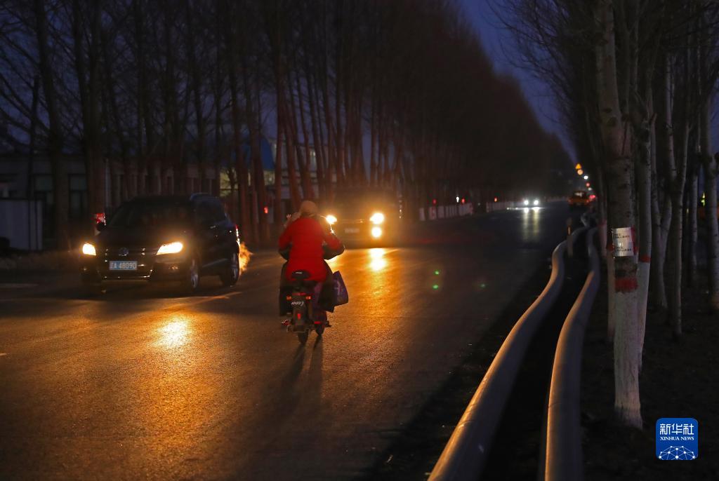 12月1日,沈陽市蘇家屯區一道路兩側樹上已經粘貼了反光條。新華社記者 楊青 攝