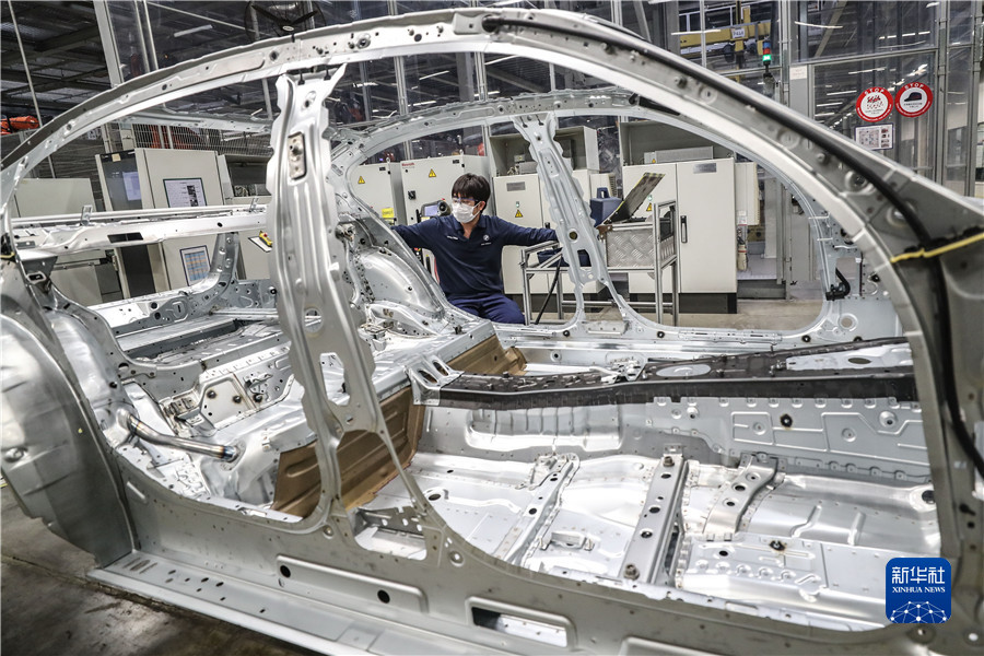 工人在華晨寶馬汽車有限公司鐵西工廠生產線上工作(2020年2月17日攝)。 新華社記者 潘昱龍 攝