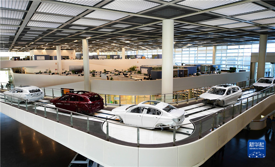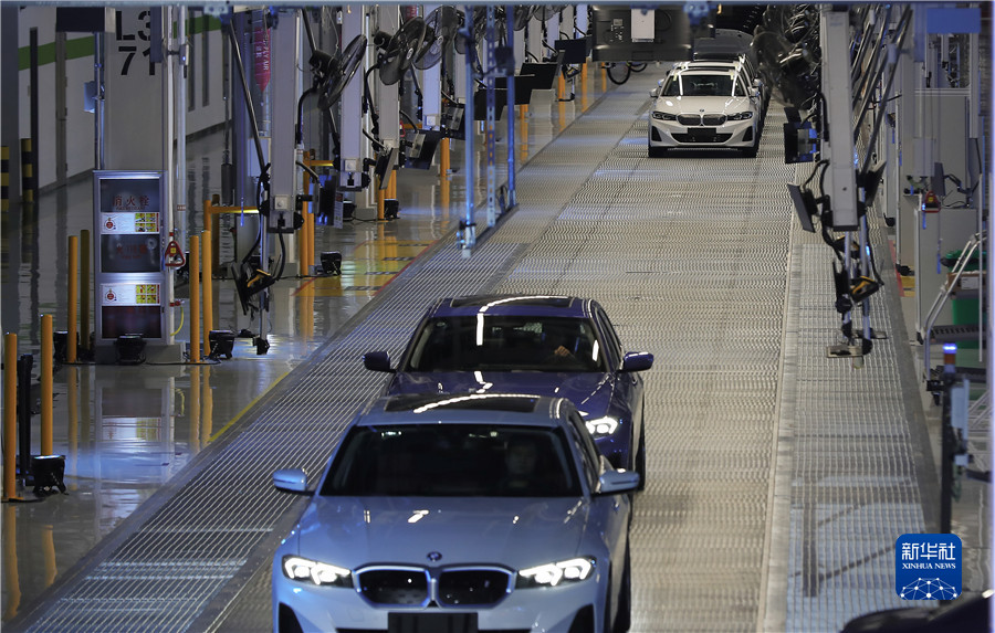 2月16日,華晨寶馬鐵西工廠流動生產線的車輛準備進入總裝車間完成車輛裝配。新華社記者 楊青攝