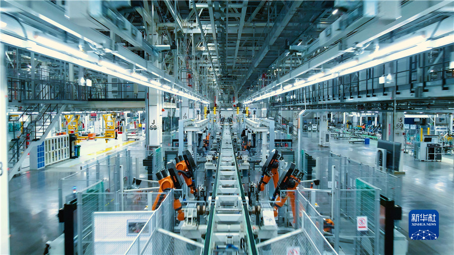 華晨寶馬沈陽鐵西新工廠進行設備安裝和調試(2021年12月21日攝)。新華社記者 楊青 攝