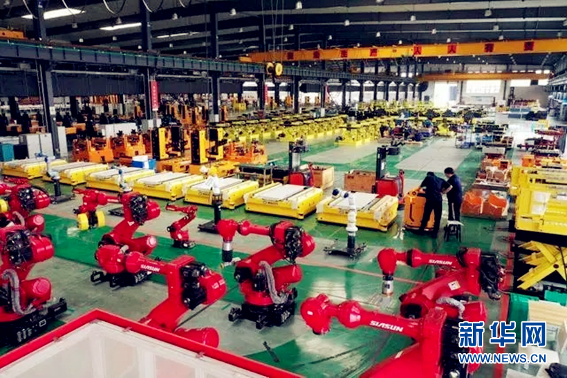 圖為沈陽新松機器人自動化股份有限公司移動機器人調試車間。受訪者供圖