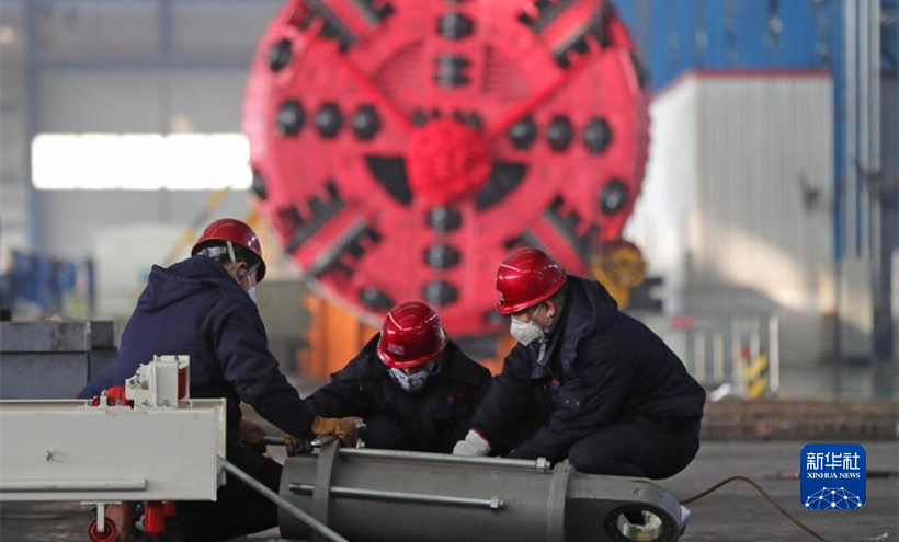 工人在北方重工盾構機分廠車間工作。新華社記者楊青攝