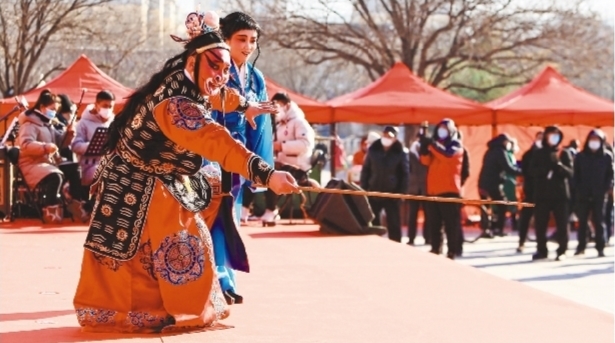 精彩紛呈的舞臺演出、內容豐富的文博展覽、形式多樣的群眾文化活動……辭舊迎新之際,各地文化活動豐富多彩,為群眾奉上了一道道精美的文化大餐。2022年12月31日,朝陽市迎新春文化旅游(體育)系列活動啟動儀式,在北塔廣場舉行?,F場的非遺展示展演活動,讓市民充分感受朝陽非遺項目的無窮魅力,給喜慶新年的人們帶來美好心情。(記者 仇一軍)