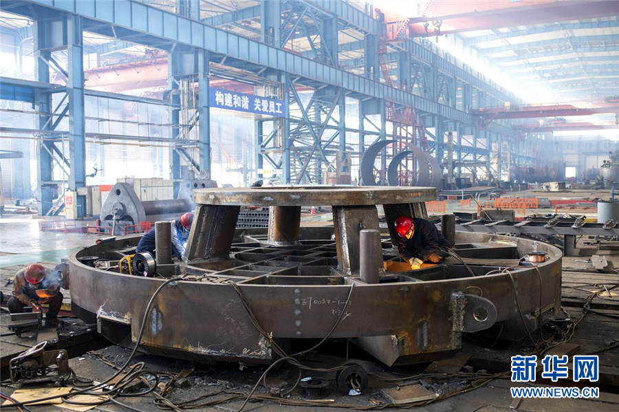 2023年1月1日,在遼寧沈陽,北方重工結構件分廠員工正在進行焊接工作。新華網發