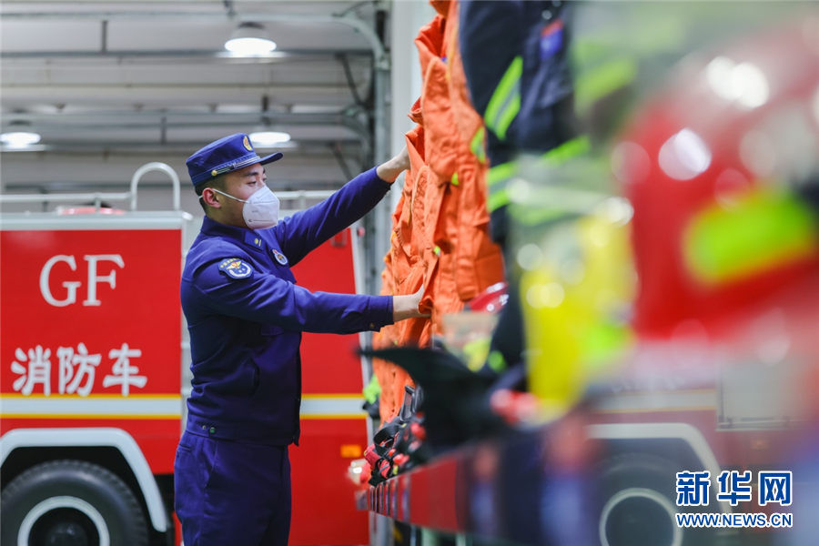 2023年1月1日,沈陽市鐵西區保工北街消防救援站消防員對車輛器材裝備進行檢查。新的一年,整裝出發,繼續為人民群眾生命財產安全保駕護航。新華網發 趙超越攝