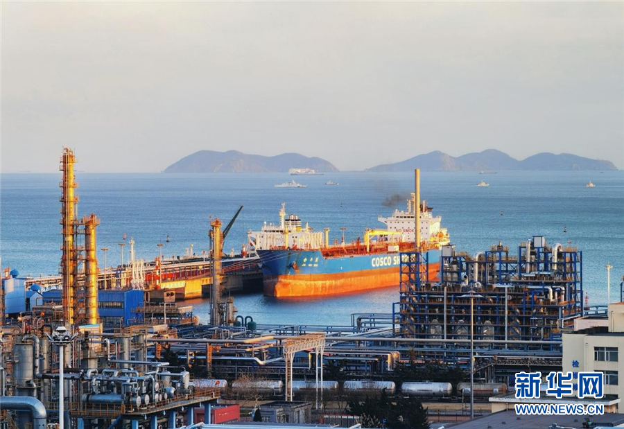 2023年1月1日,大連石化公司產銷兩旺。在公司碼頭,滿載著高質量清潔油品的油輪將迎著2023年第一輪旭日駛向遠方。新華網發