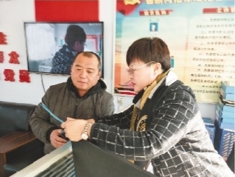 盤山縣陳家鎮網格中心工作人員幫助居民通過手機終端辦理業務。