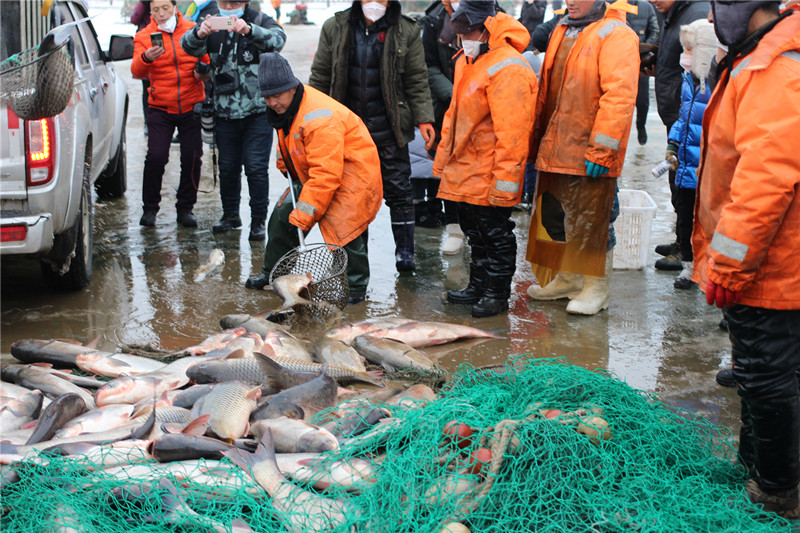 新華網沈陽1月7日電(記者楊青)“準備收魚!”伴著一聲聲雄渾激昂的吆喝號子,上千米的漁網緩緩收起,一尾尾肥美的鯉魚、白鰱、鳙魚競相躍出水面,漁民的臉上洋溢著豐收的喜悅,圍觀的游客們爭相搶購新鮮的魚兒。