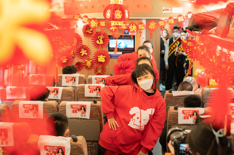 沈陽客運段職工用活力的舞蹈陪伴旅客“返鄉”。沈陽客運段供圖