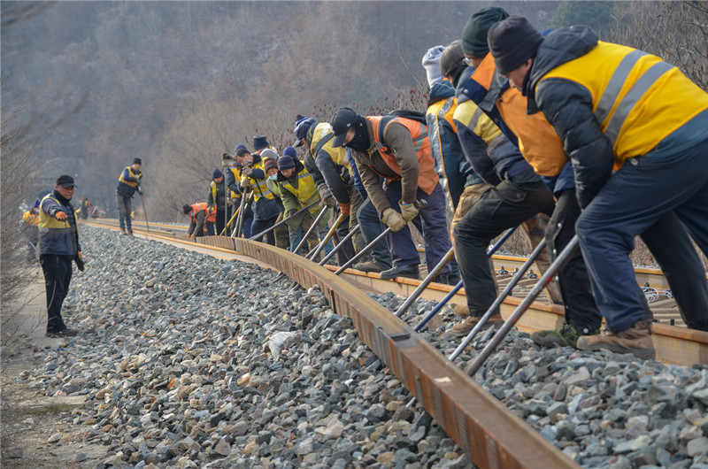 為確保春運期間設備安全穩定,丹東工務段職工積極備戰,對管內線路設備精簡細修。新華網發 遲金海攝