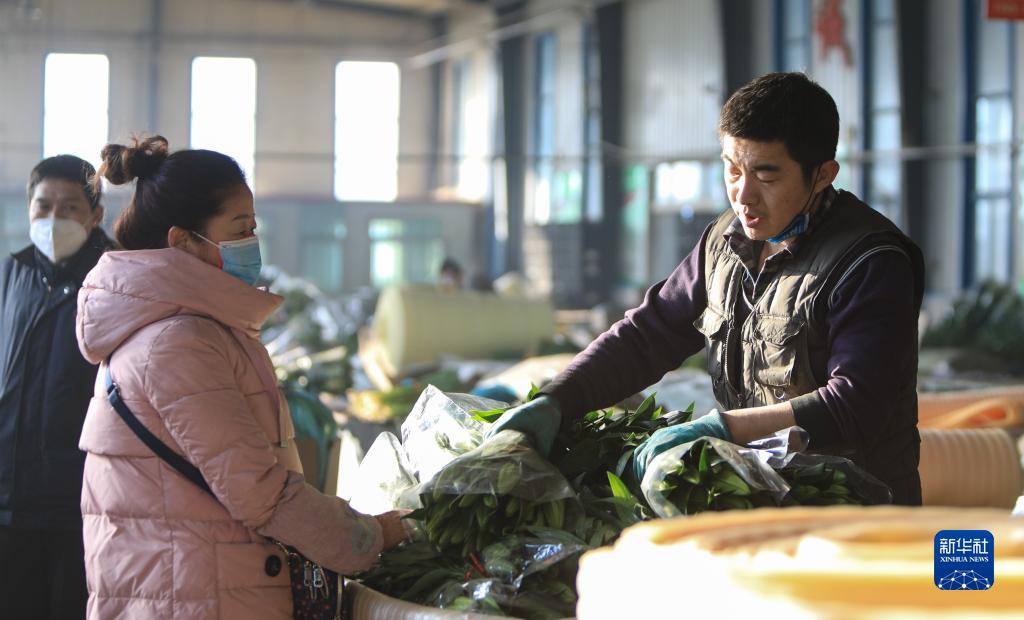 1月5日,花農在凌源花卉交易市場內打包鮮花。新華社記者 王乙杰 攝