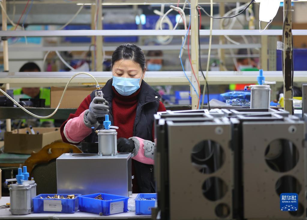 1月5日,沈陽一家醫療企業的工人在生產制氧機。新華社記者 楊青 攝