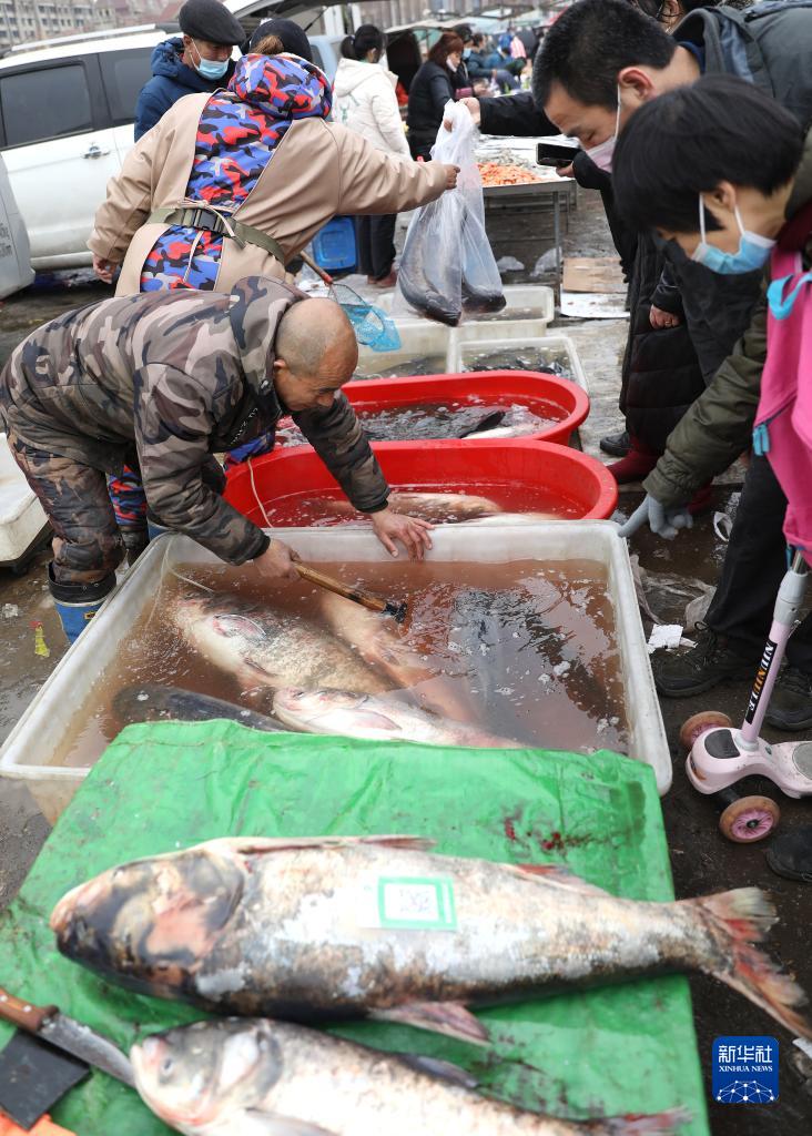 1月12日,市民在蒲河大集上買魚。新華社記者 姚劍鋒 攝