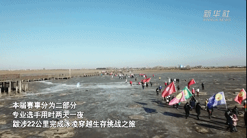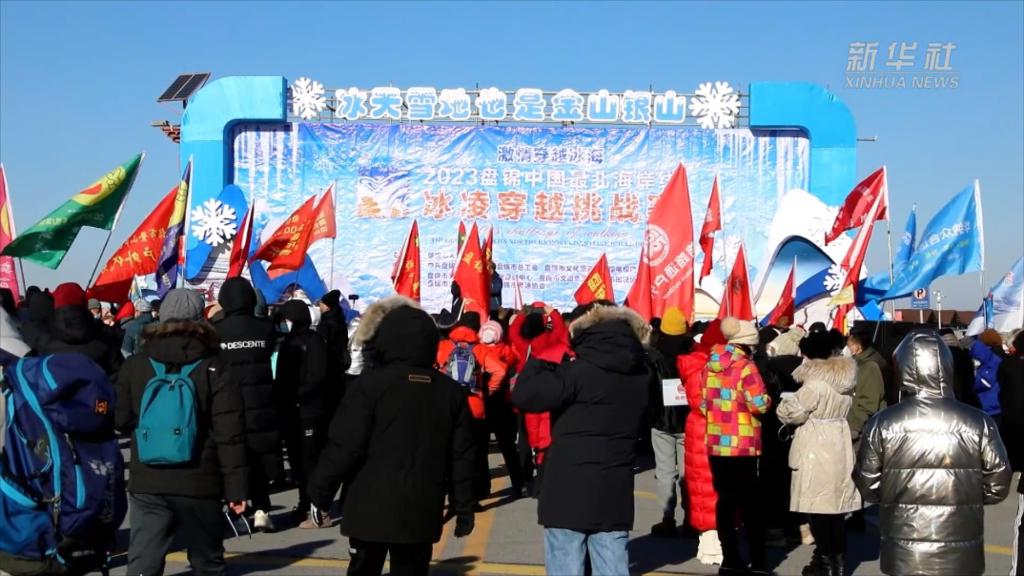 1月15日,在遼寧省盤錦市紅海灘國家風景廊道,由盤錦市人民政府主辦的2023中國最北海岸線冰凌穿越挑戰賽啟幕。