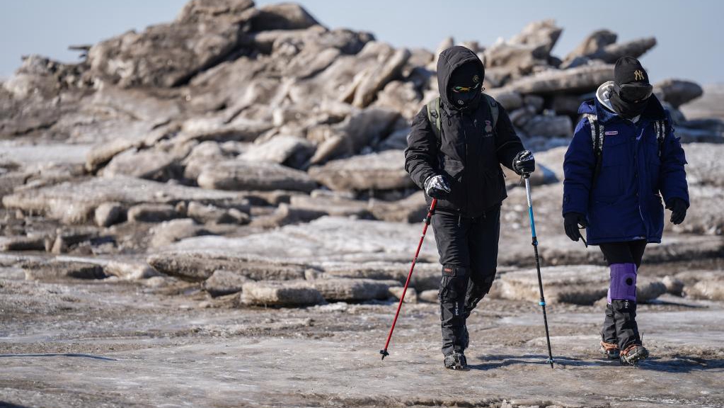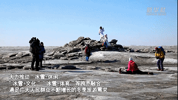 來自國內外的近千名冰雪運動愛好者冒著嚴寒參與到海上冰凌徒步等各類冰雪項目中。