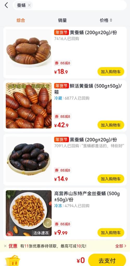 德隆村的蠶蛹在網絡電商平臺上售賣。(受訪者供圖)