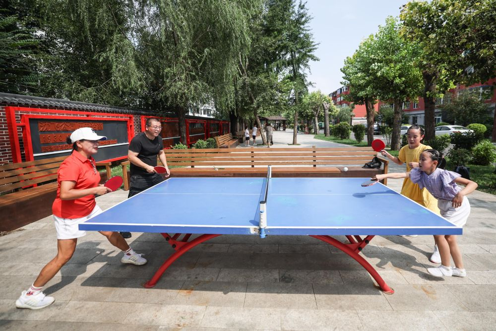 2022年8月18日,牡丹社區的居民在社區打乒乓球。
