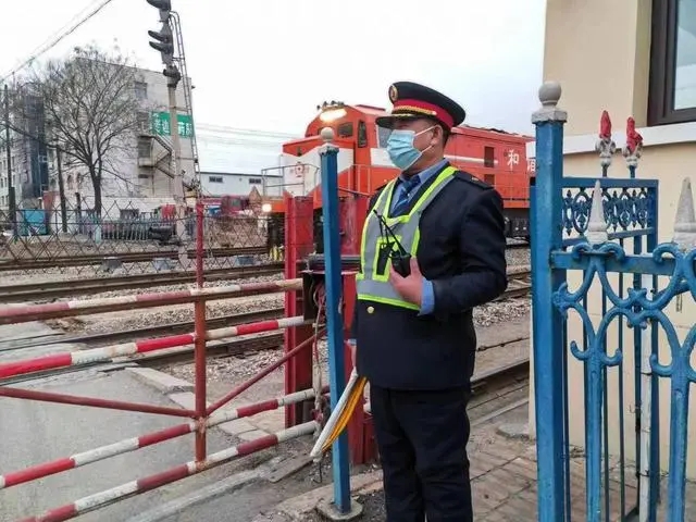 吳獻明在鐵路道口出場接車。(中國鐵路沈陽局集團有限公司供圖)