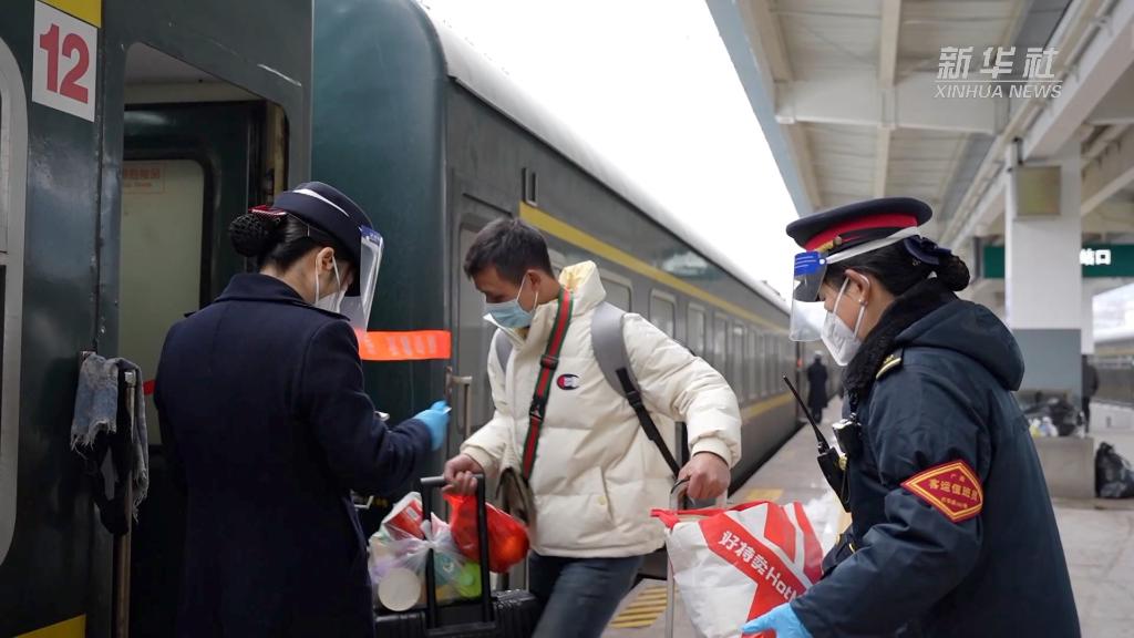 廣鐵火車站的鐵路職工正在迎接客流高峰。