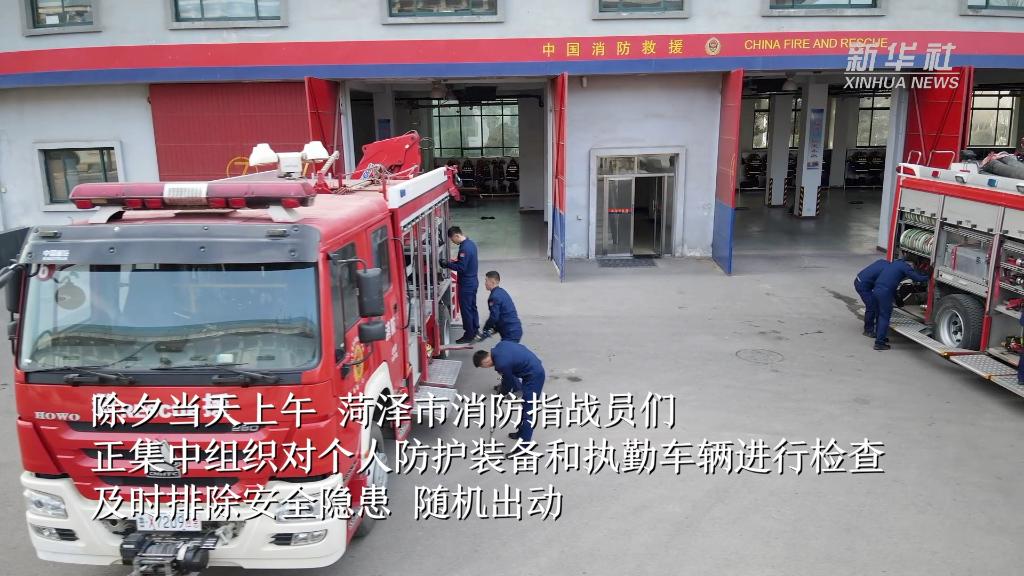山東省菏澤市消防指戰員們正集中組織對個人防護裝備和執勤車輛進行檢查,隨機出動。