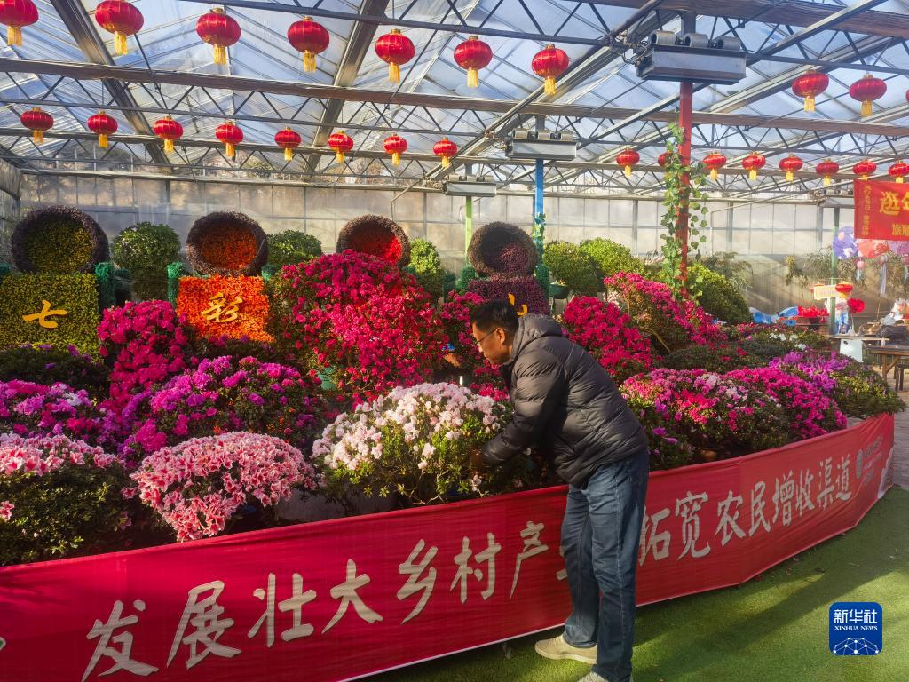 室外寒風刺骨,現代化大型溫室內卻春意盎然,各色杜鵑花競相開放,空氣中飄著淡淡花香,游客們不時駐足拍照。