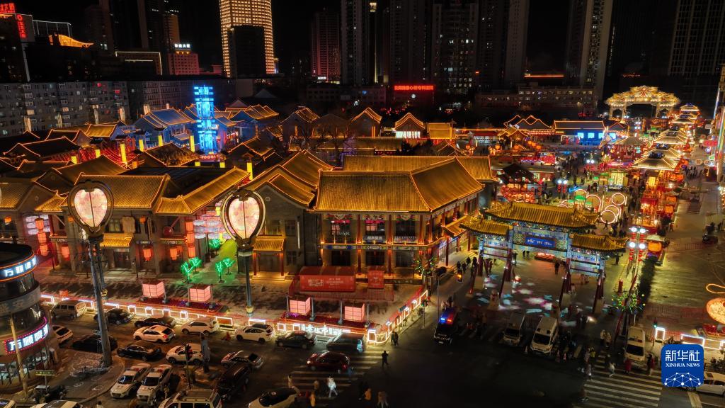 1月23日,市民在沈陽新春皇寺廟會游玩(無人機照片)。新華社記者 楊青 攝