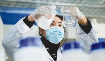 盤錦精細化工中試基地高端實驗室里,技術人員在做樣本分析。潘浩 攝