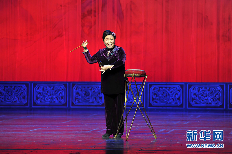 1月30日,在沈陽市盛京大劇院舉辦的“新春喜樂會”曲藝小品晚會中,曲藝演員張娃佳表演傳統東北大鼓《小兩口頂嘴》。新華網發