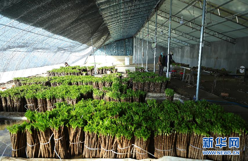 新華網沈陽2月7日電(劉舒)走進沈陽茗源現代農業發展有限公司種植刺嫩芽的大棚,棚里溫度適宜,分布著十多個淺淺的水槽,其中幾個水槽中生長著一捆捆抽著翠綠的刺嫩芽。