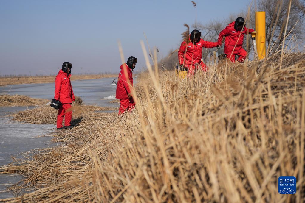 2月6日,中國石油遼河油田興隆臺輸氣分公司巡線工人在進行巡線工作。新華社記者 潘昱龍 攝